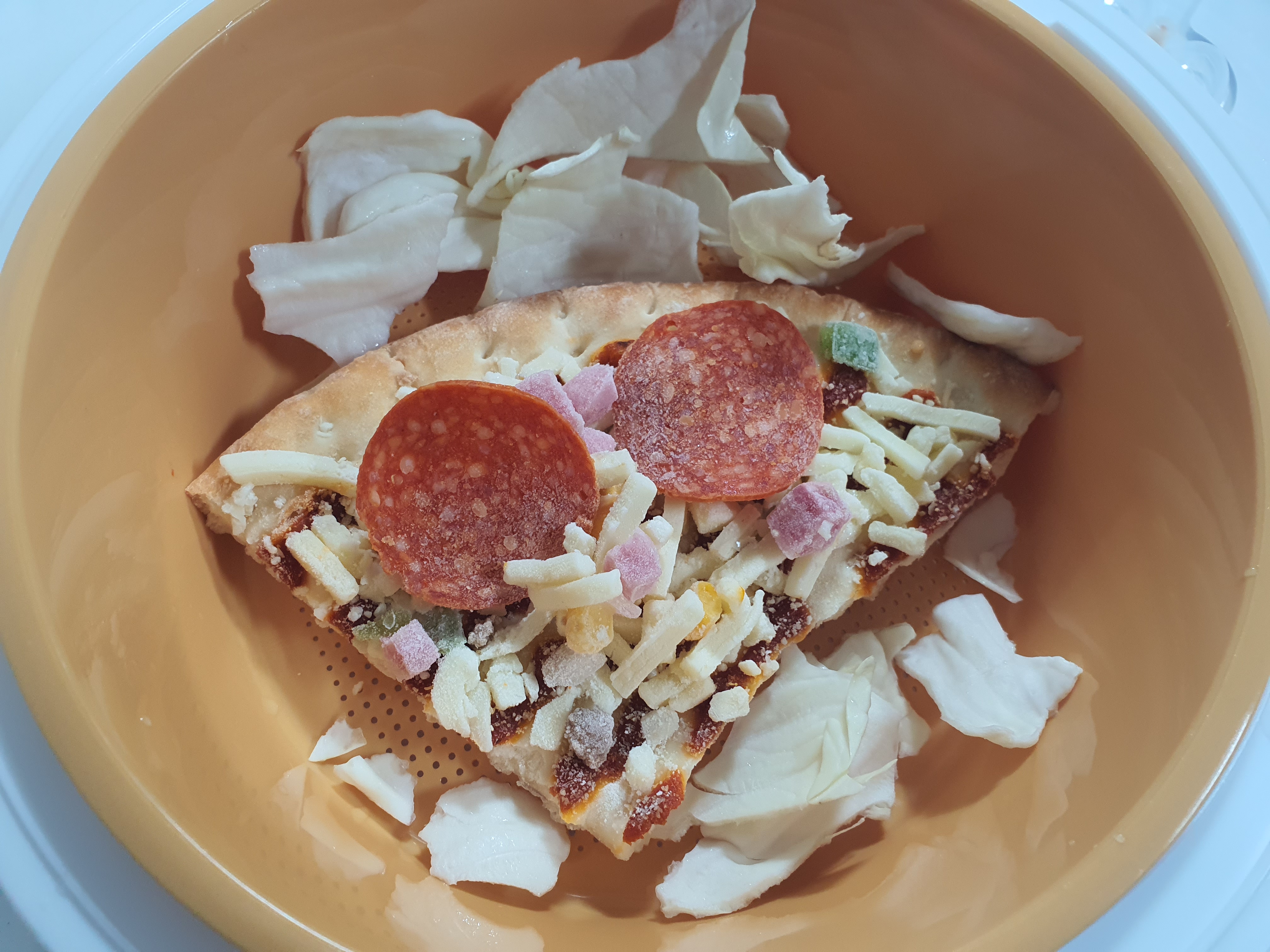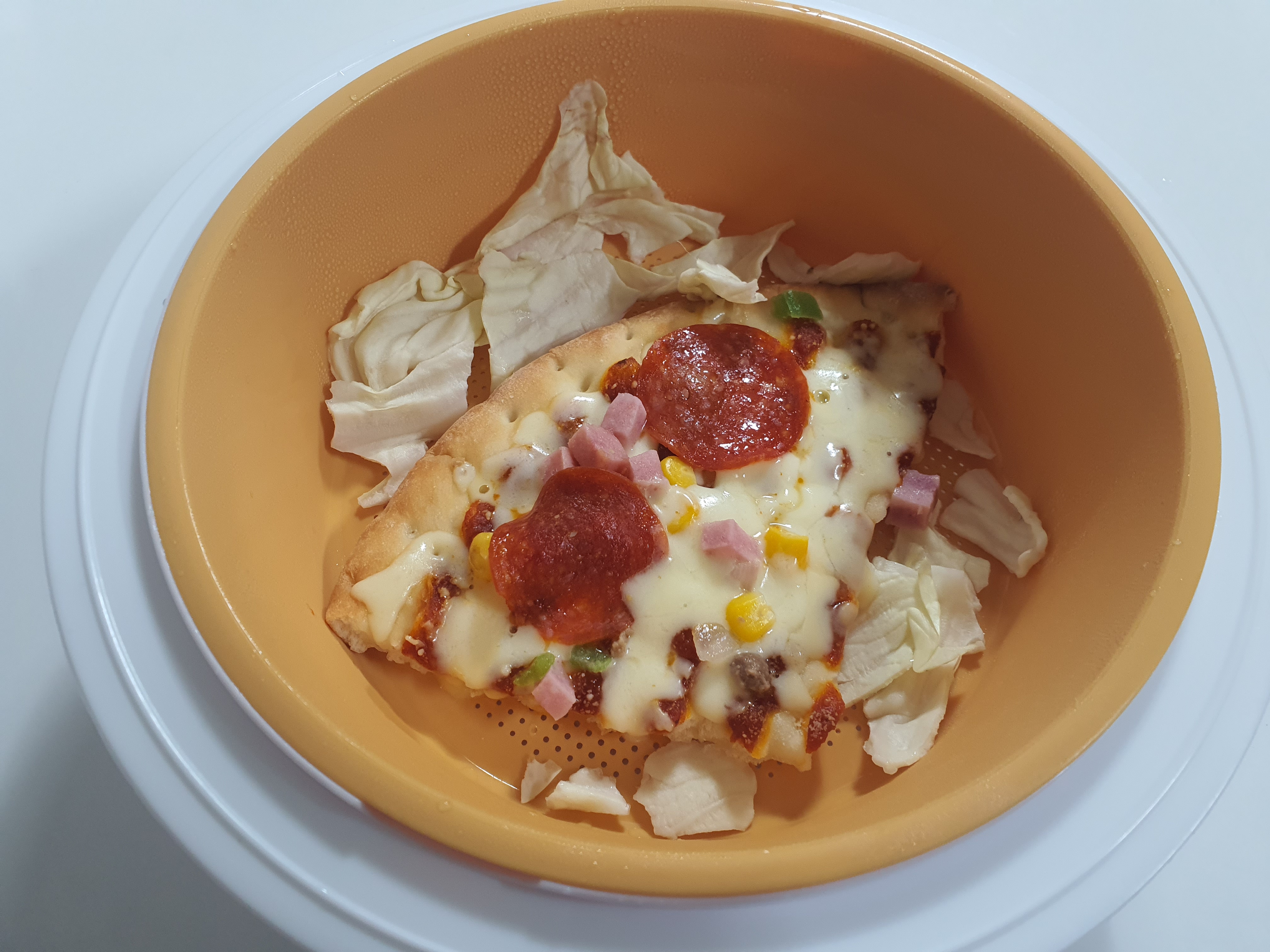 오뚜기 냉동 피자를 전자레인지 찜기를 이용해서 조리했어요.