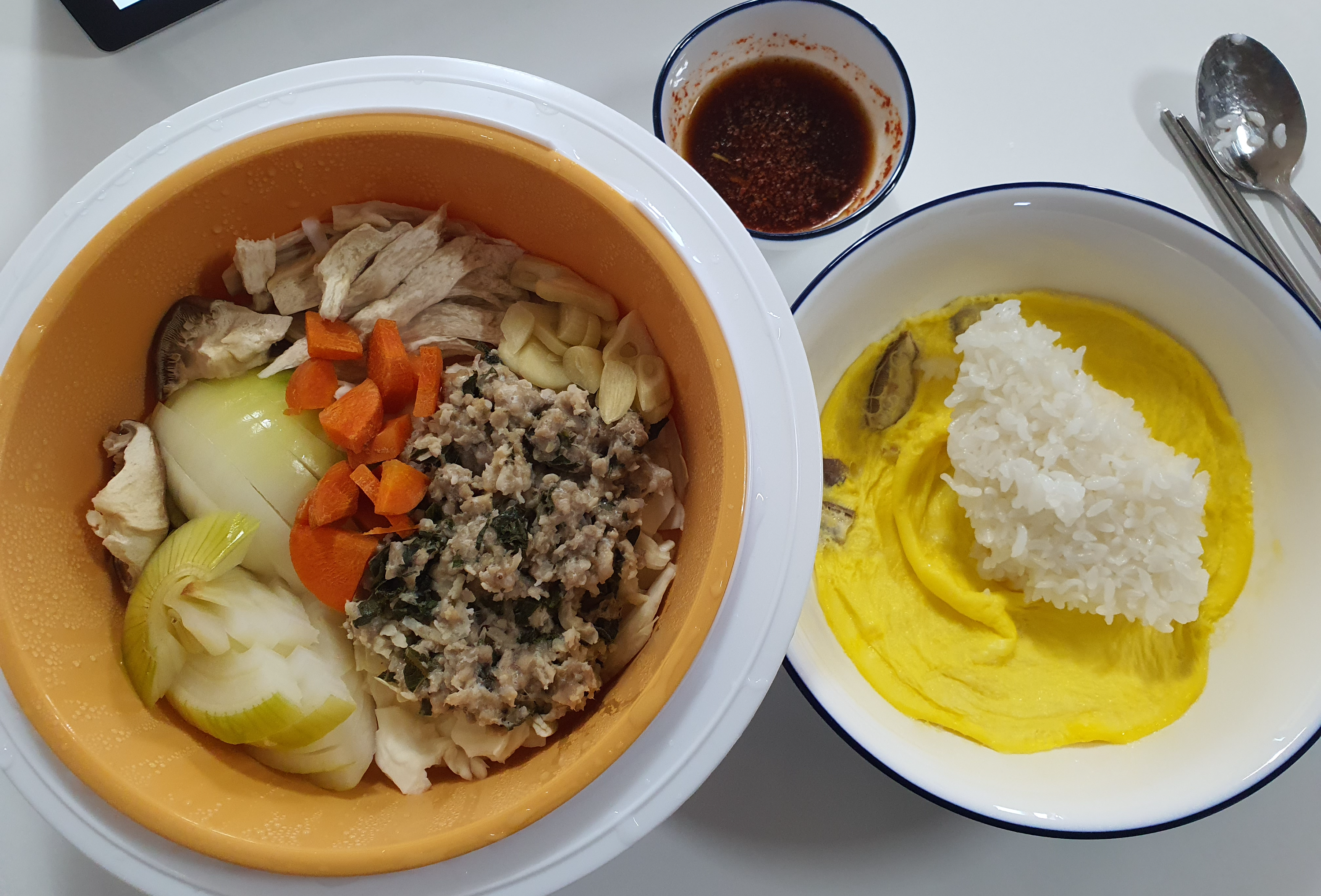 전자레인지로 계란찜도 해서 같이 먹었어요.