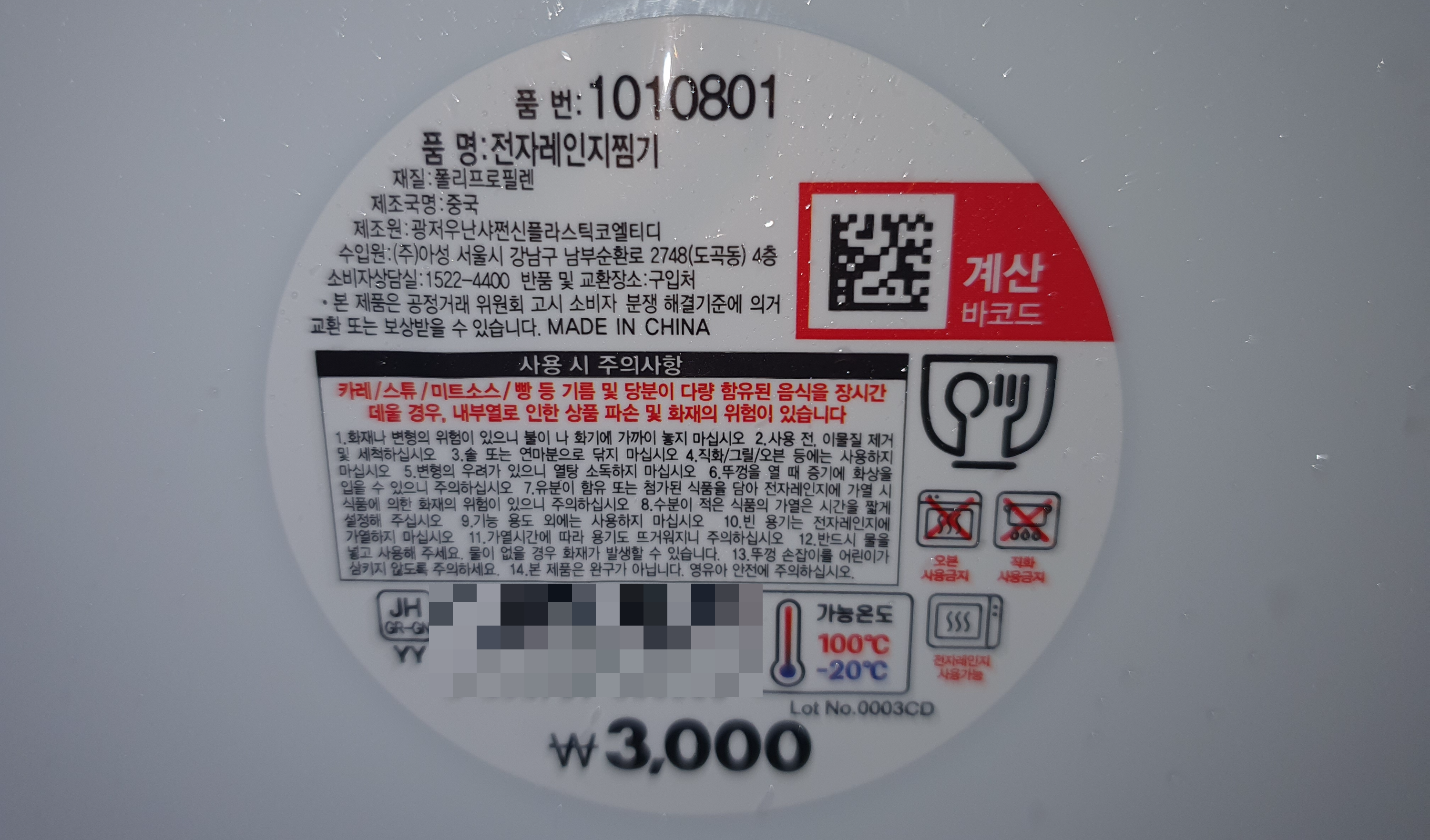 중국산 플라스틱 전자레인지 찜기 통 입니다.