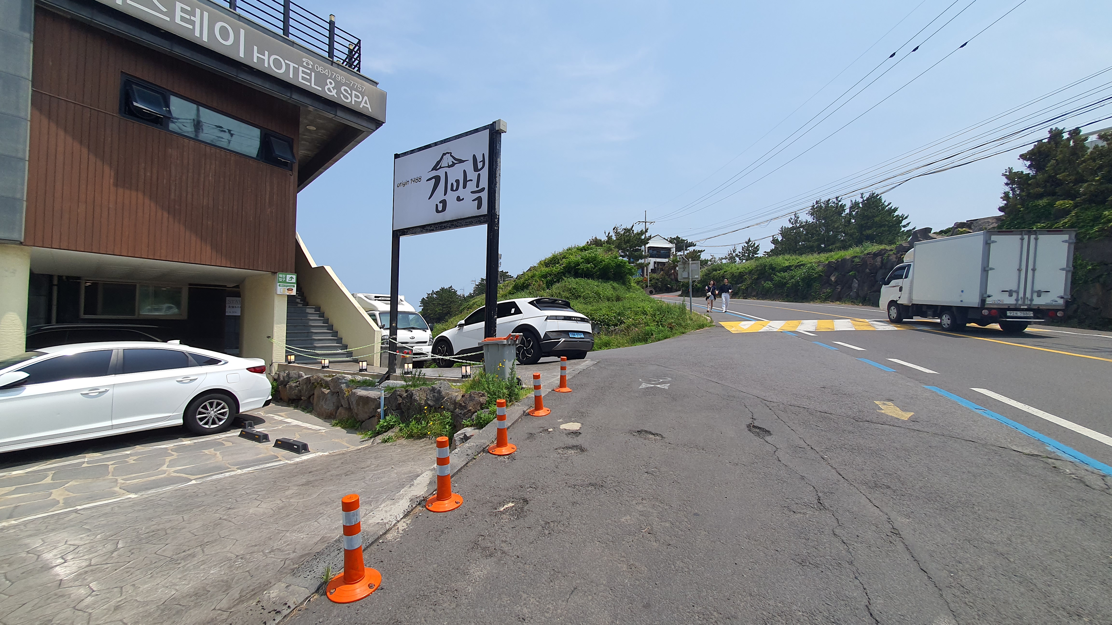 근데 김만복 김밥 애월점 근처에 주정차할 곳이 마땅히 없었어요.