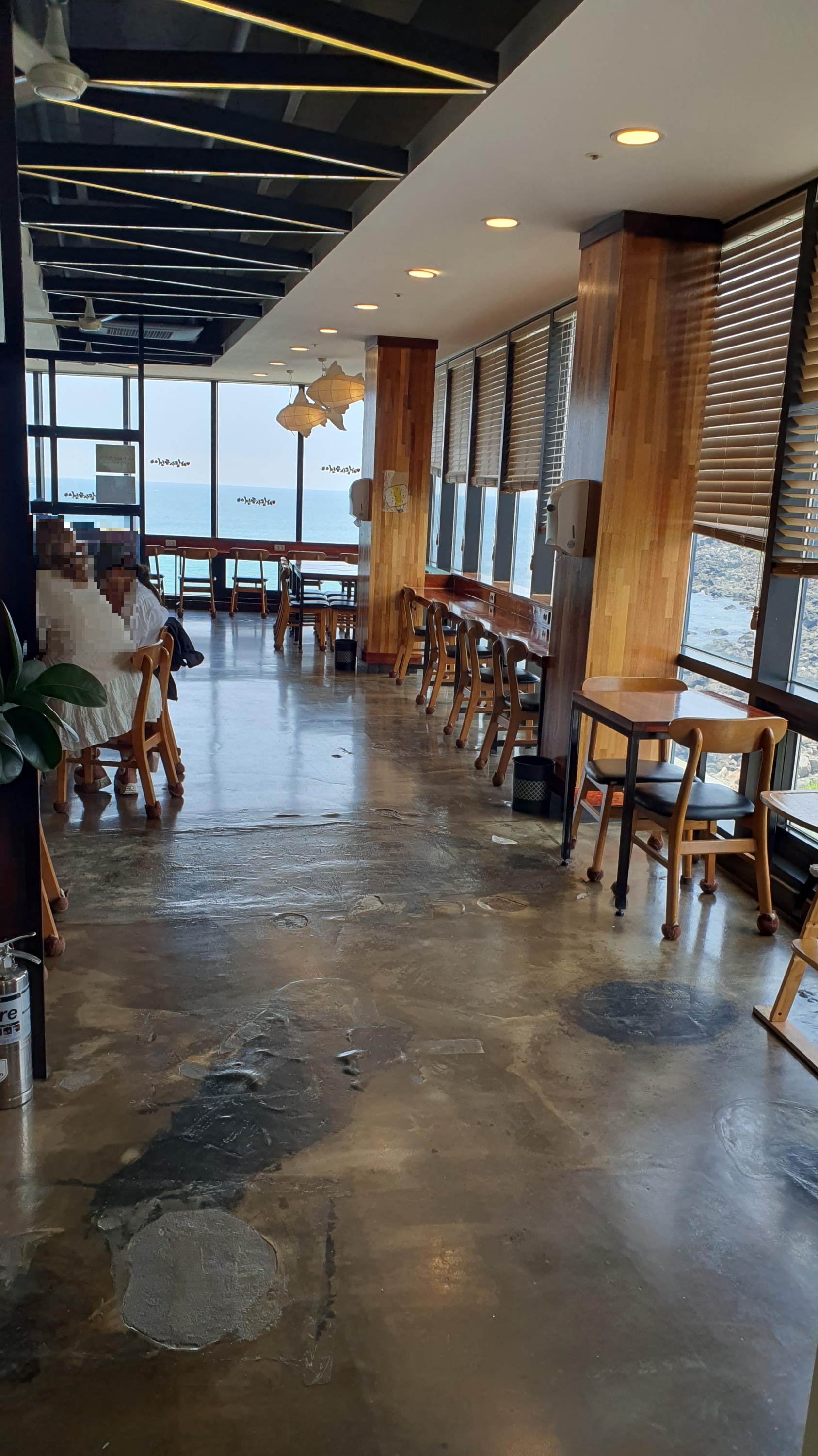 실내 테두리를 따라 좌석이 배치되어 있고, 창가자리 어디를 앉든지 바다는 볼 수 있습니다.
