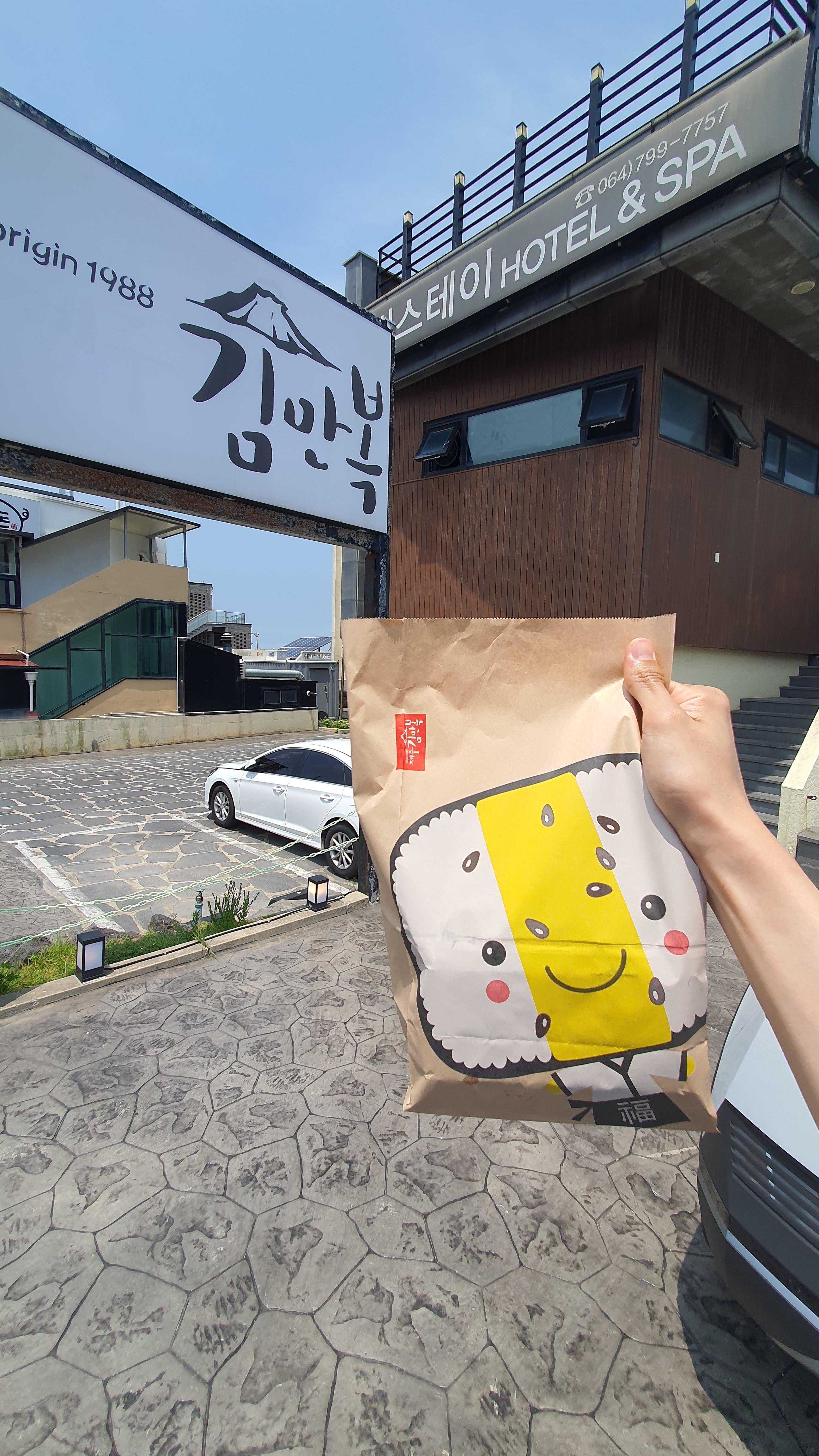 Jeju Kim Manbok Aewol store parking, Manbok's gimbap packaging review.