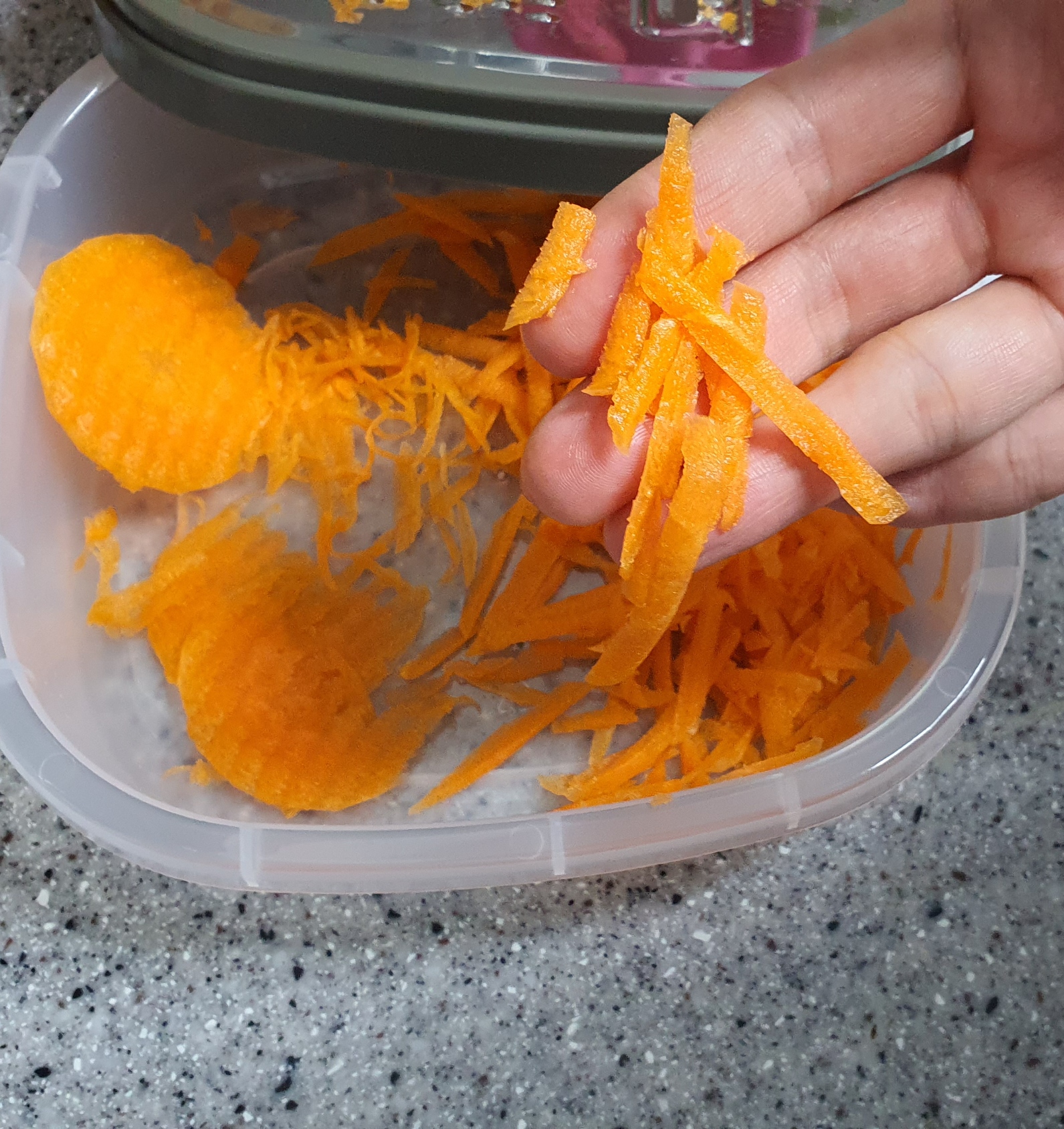 당근을 슬라이서, 얇게 자른 모습입니다.
