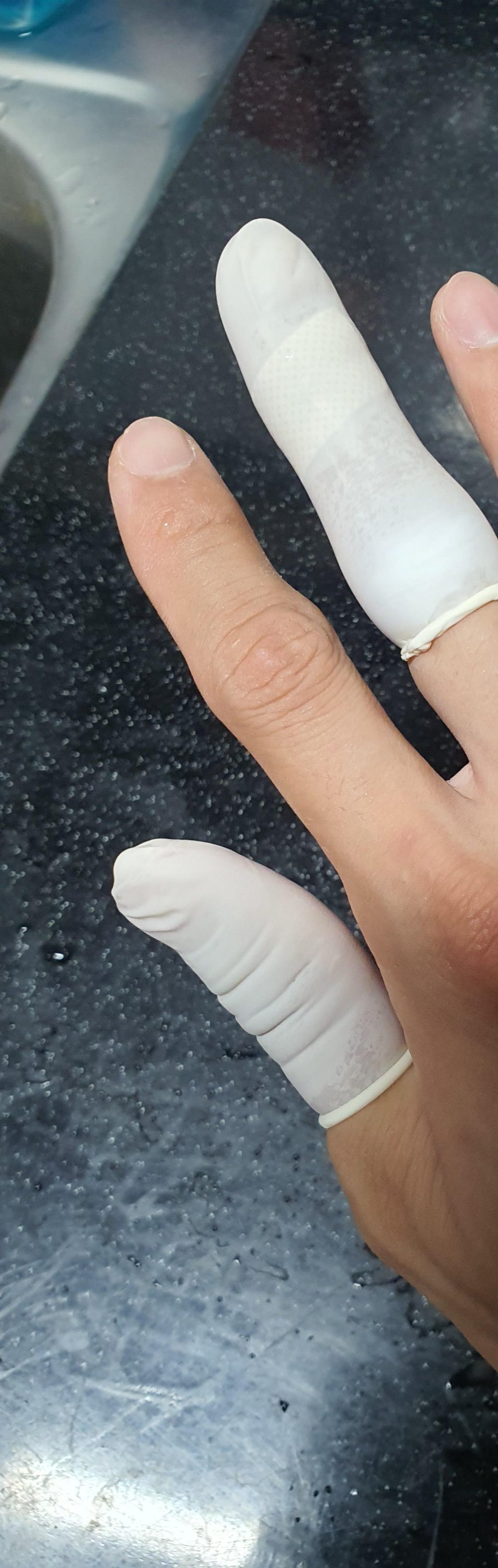 중지 먼저 다쳤고 '별로 안다쳤다'고 생각해서, 곧바로 채칼을 사용하던 중 엄지까지 다쳤습니다.