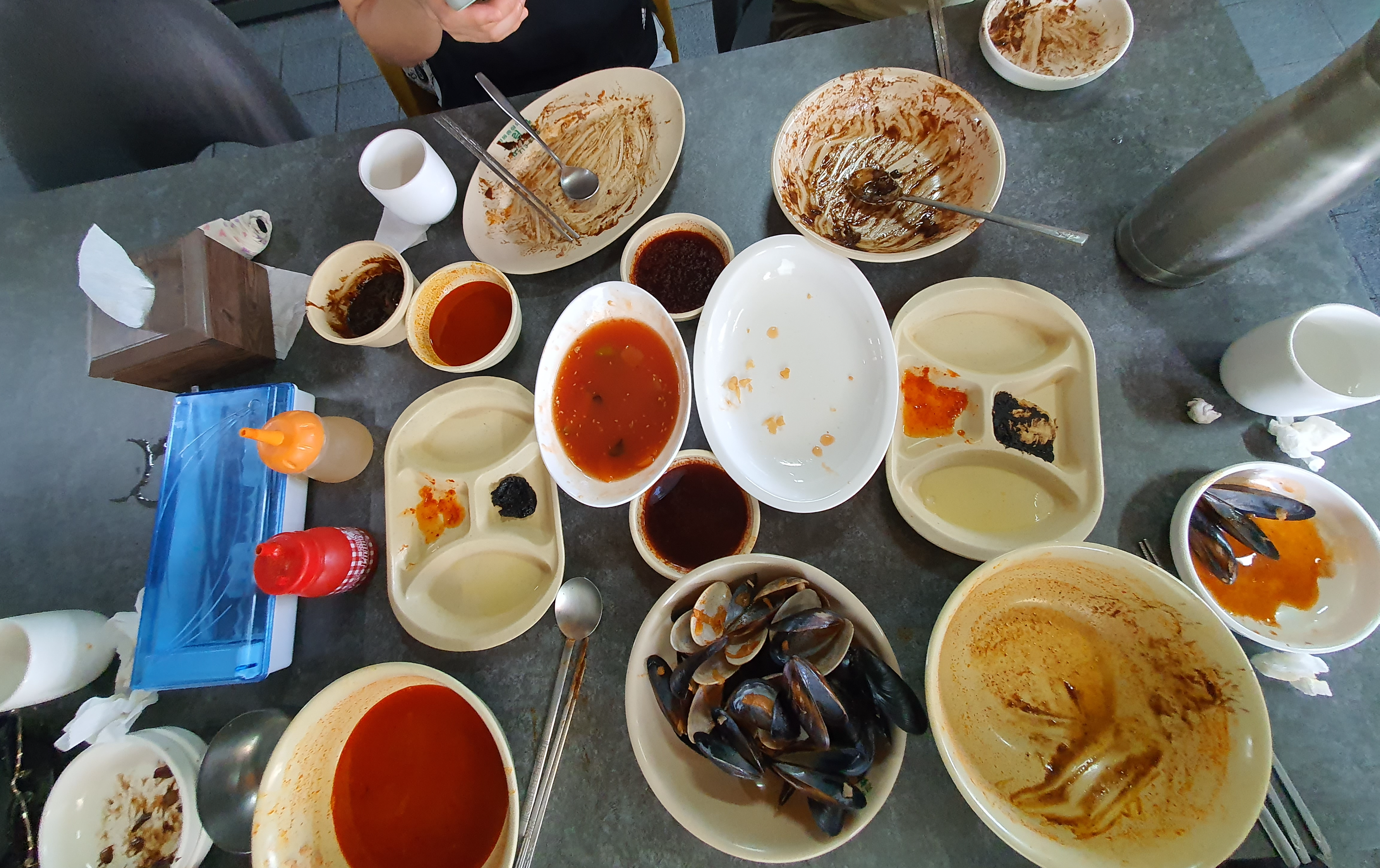 다들 맛있게 다 먹었어요. '짜장, 짬뽕 2, 볶음밥, 탕수육, 군만두' 다 먹었어요.