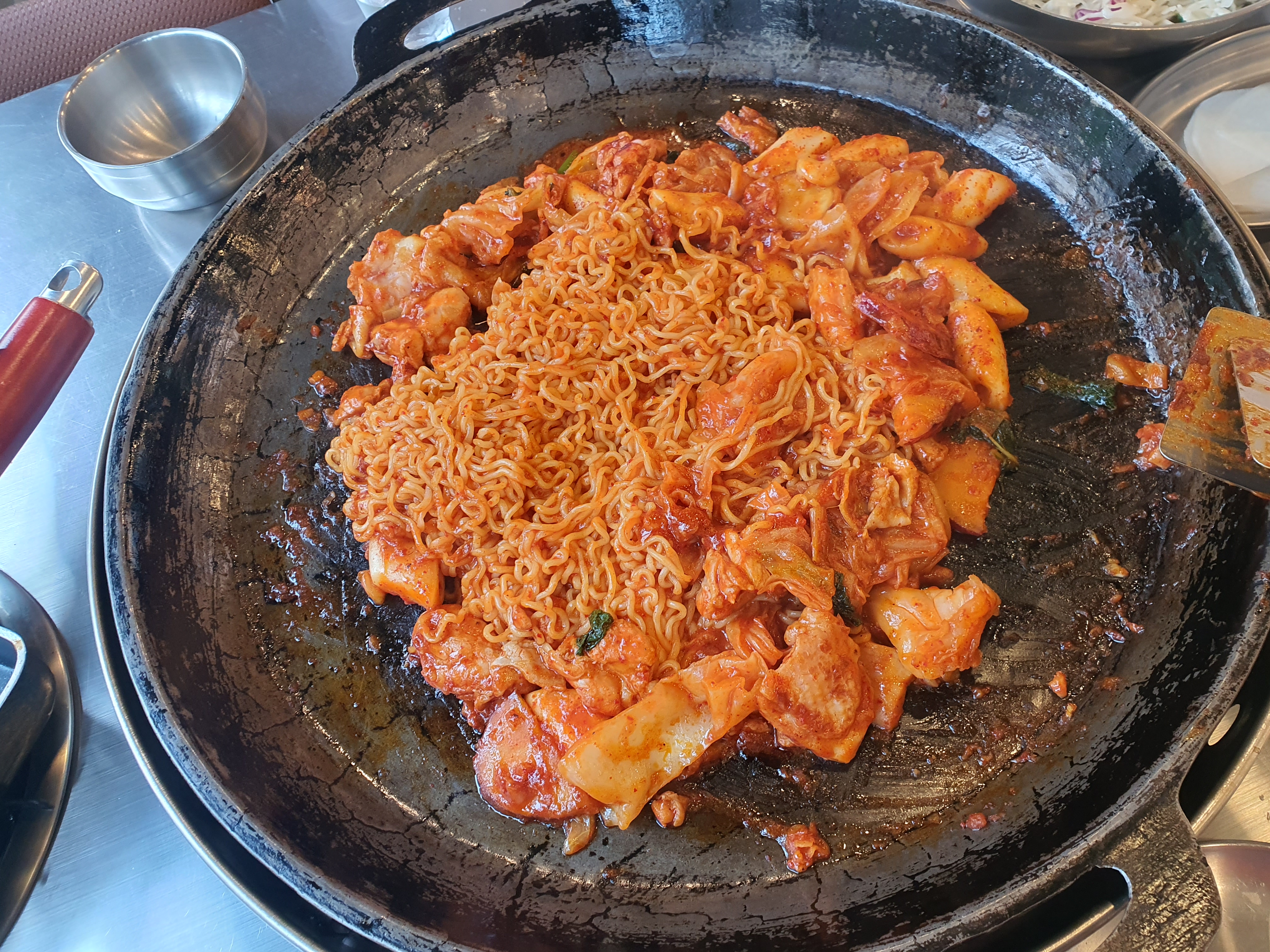 닭갈비에 라면사리를 2인분이나 추가했어요.