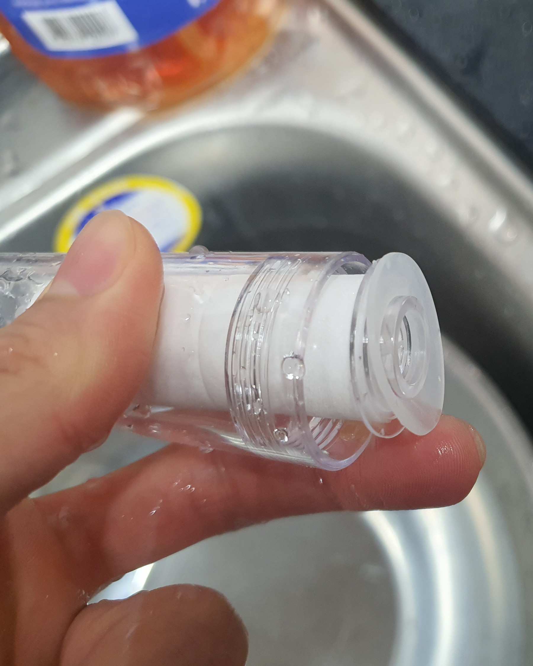 다이소 필터 교체용 수전은 투명한 구조라서 안이 다 보이고, 3단계로 분리 되기때문에 청소와 관리가 참 쉬워요.