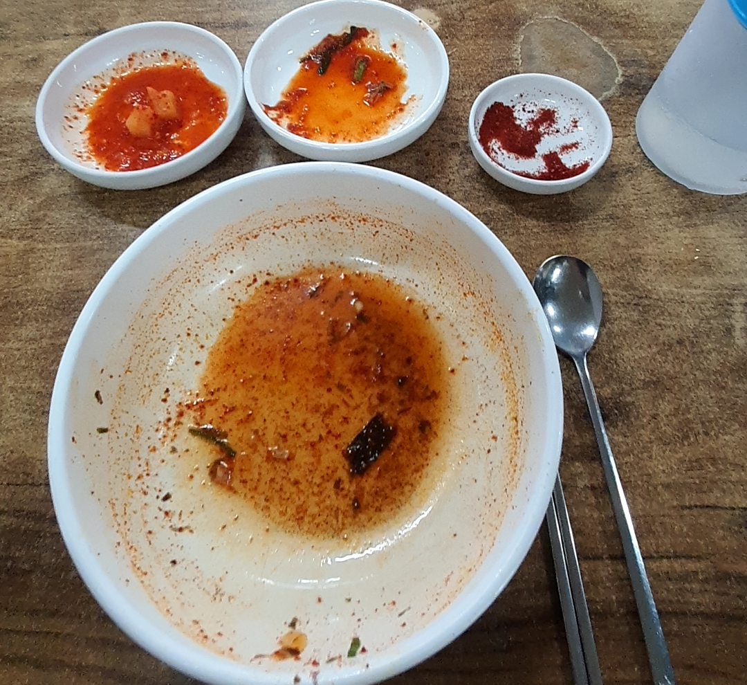 처음에는 '후추향 + 약간의시원함 + 구수한맛'으로 먹고, 주간에 고추가루를 듬뿍 넣어 먹었어요.