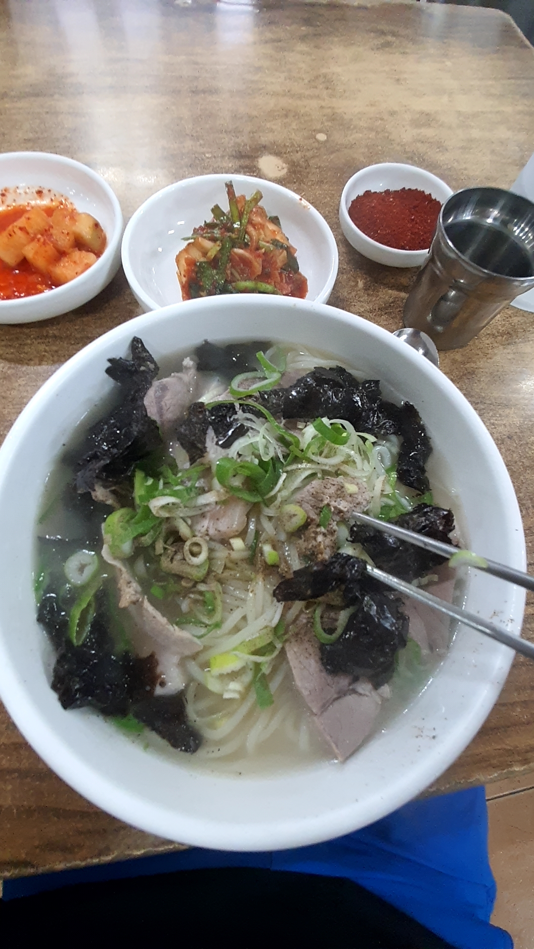 제주 애월읍 하귀2리에서 한양뼈감탕에서 뼈해장국, 고기국수 먹었어요.