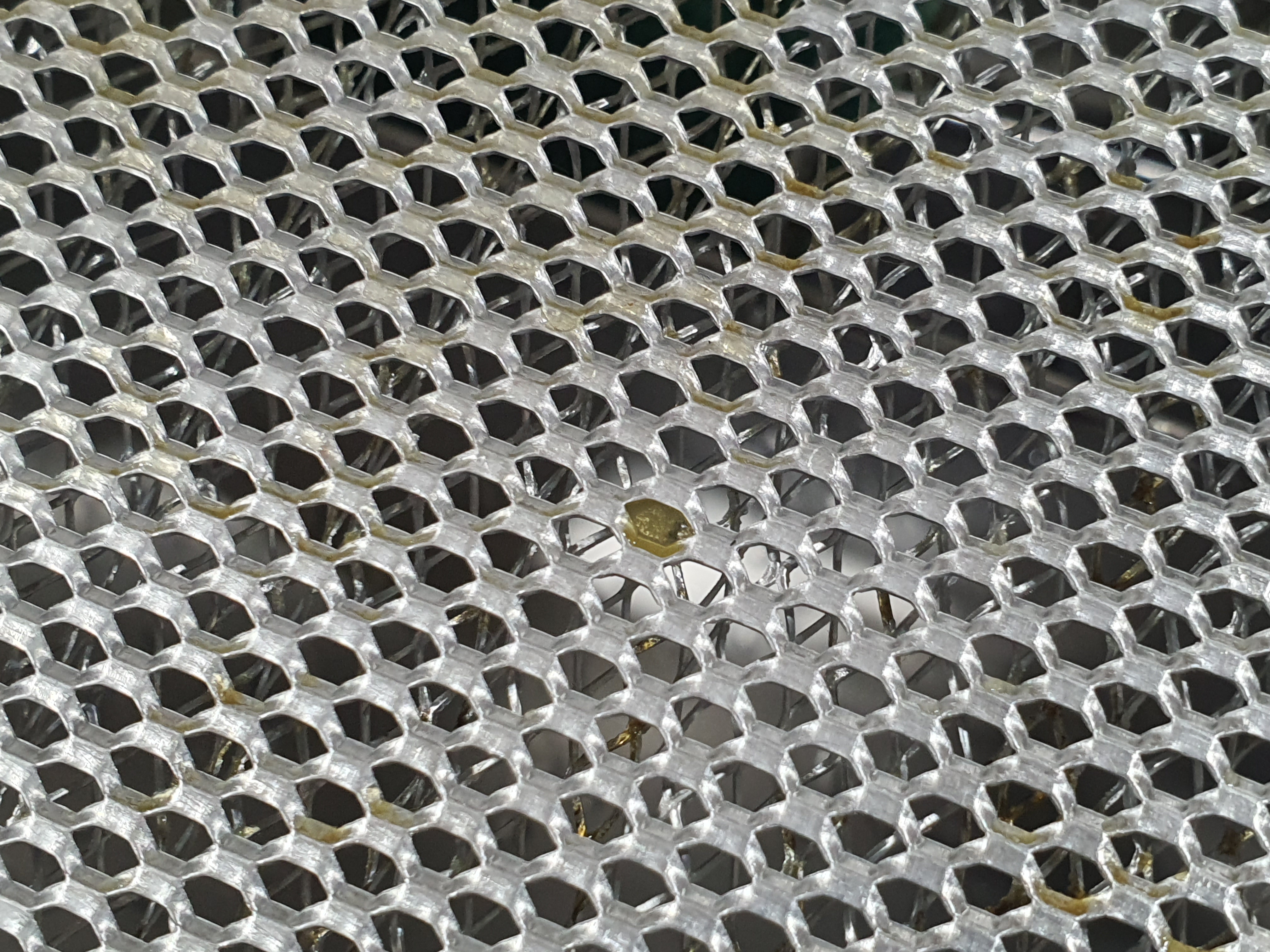 (위에 놓았던) 거품을 뿌려놓은 필터는 깨끗해지긴 했는데, 완벽하진 않아요.