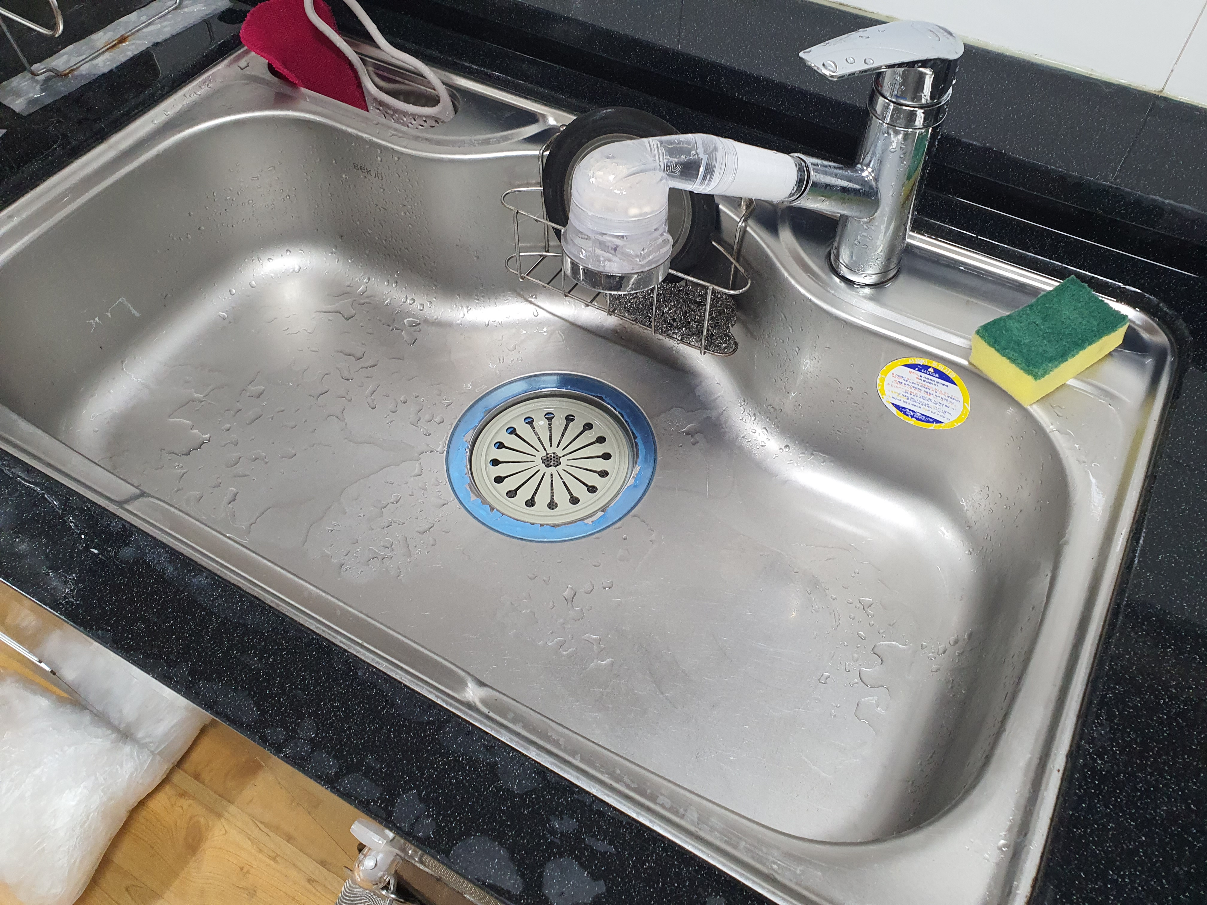 수세미로 문질러서 닦아줬습니다.