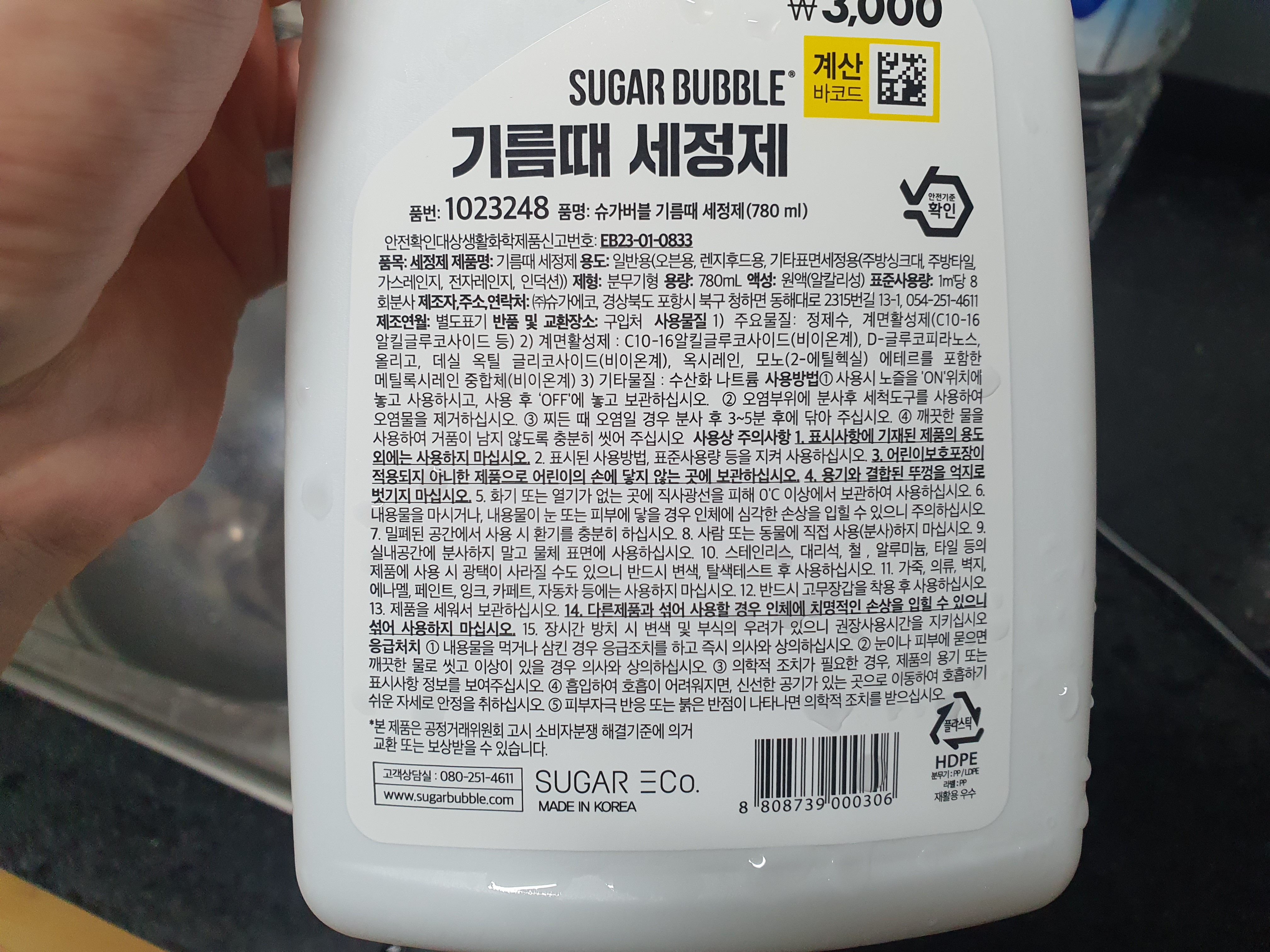 품명: 슈가버블 기름때 세정제 (780ml)