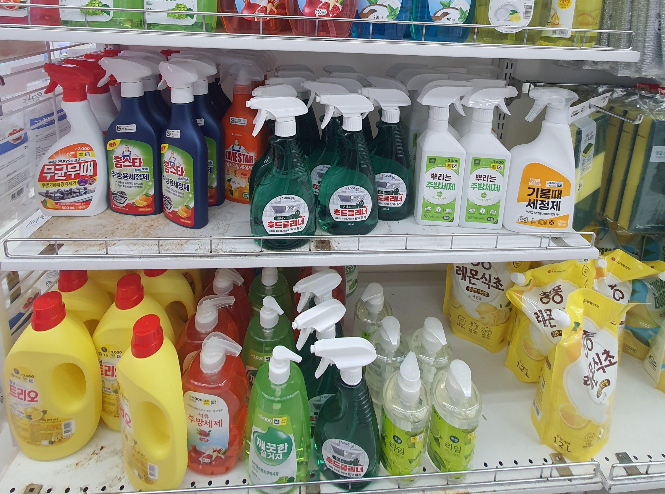다이소 주방용품 코너, 주방 세제 부분에 기름때 제거제를 만날 수 있어요.