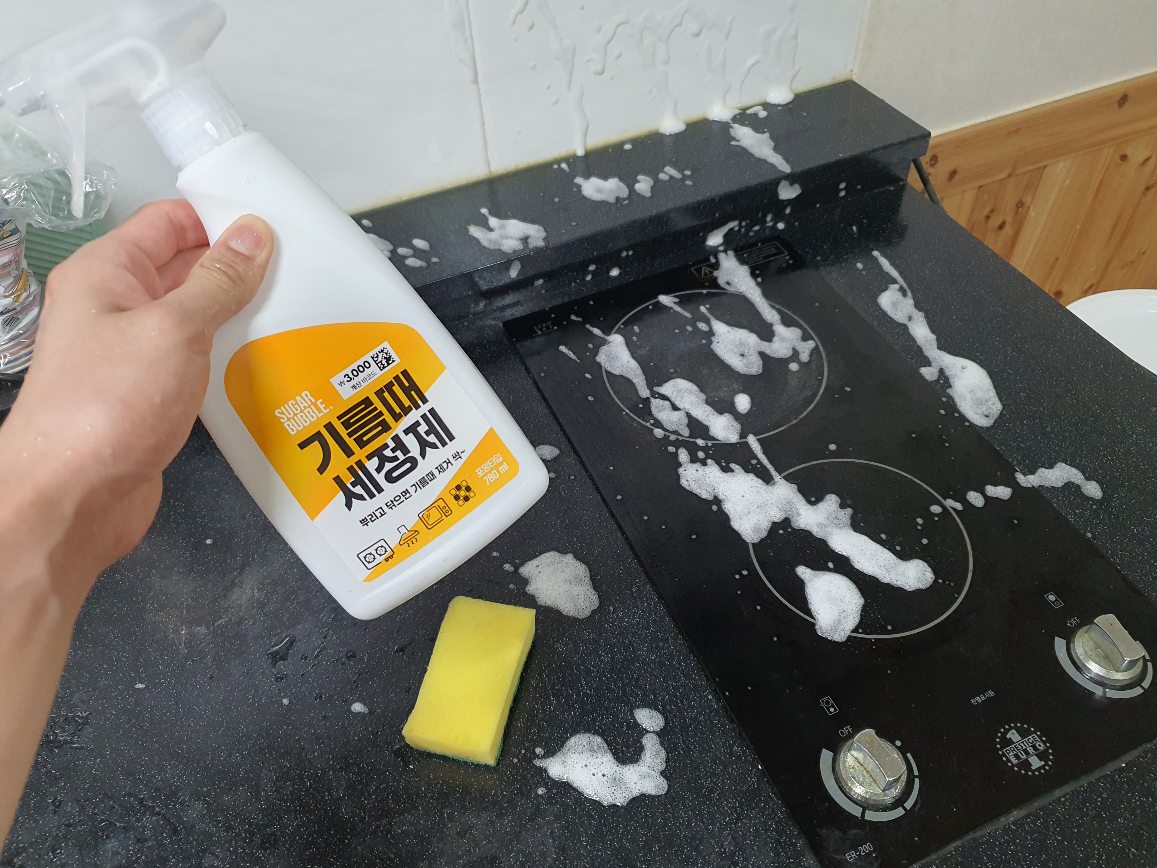 기름때 세정제로, 주방을 청소한 모습입니다.
