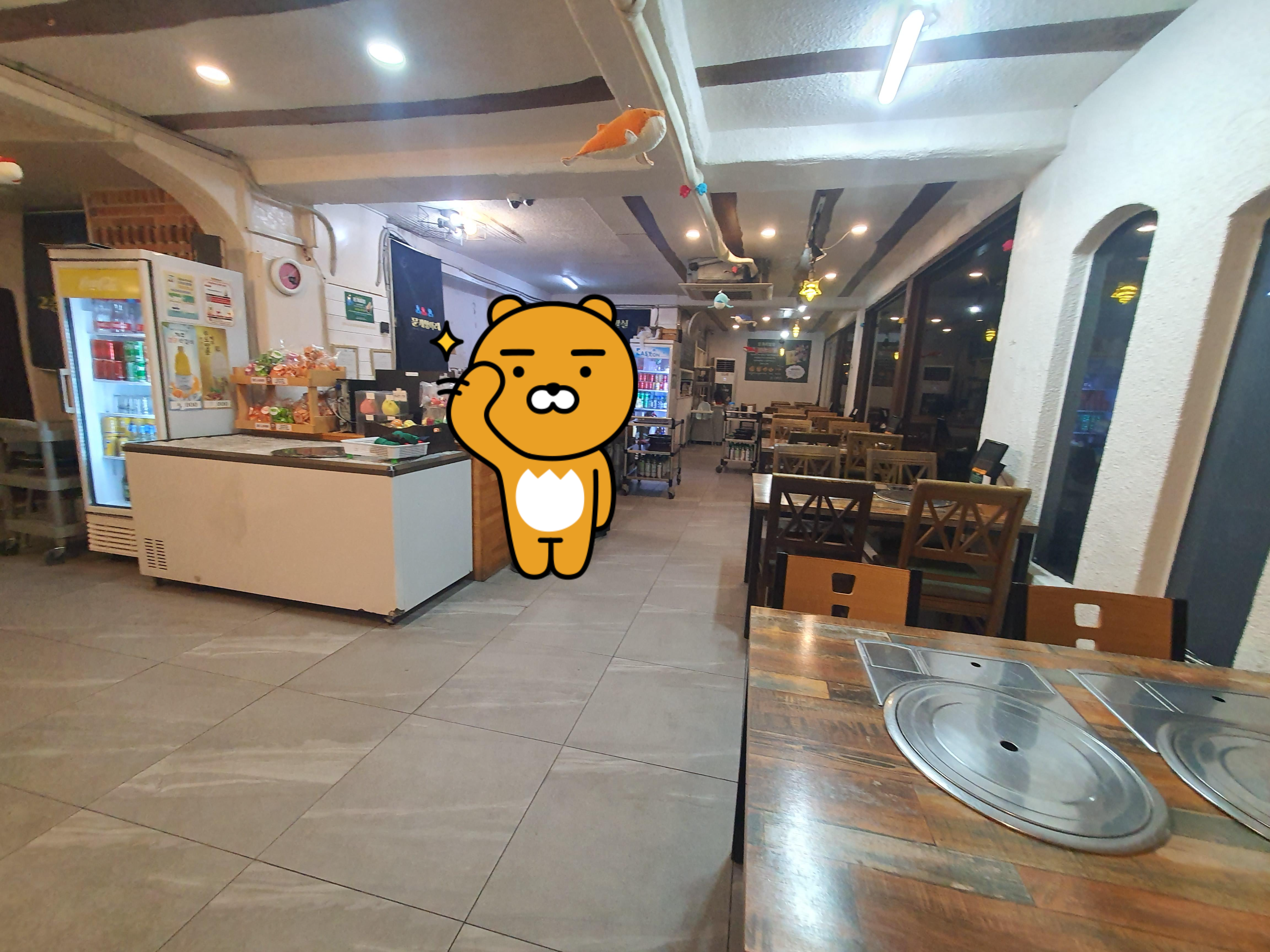 위 사진 실내 공간에다가 추가로 4~6개의 테이블이 더 존재합니다.