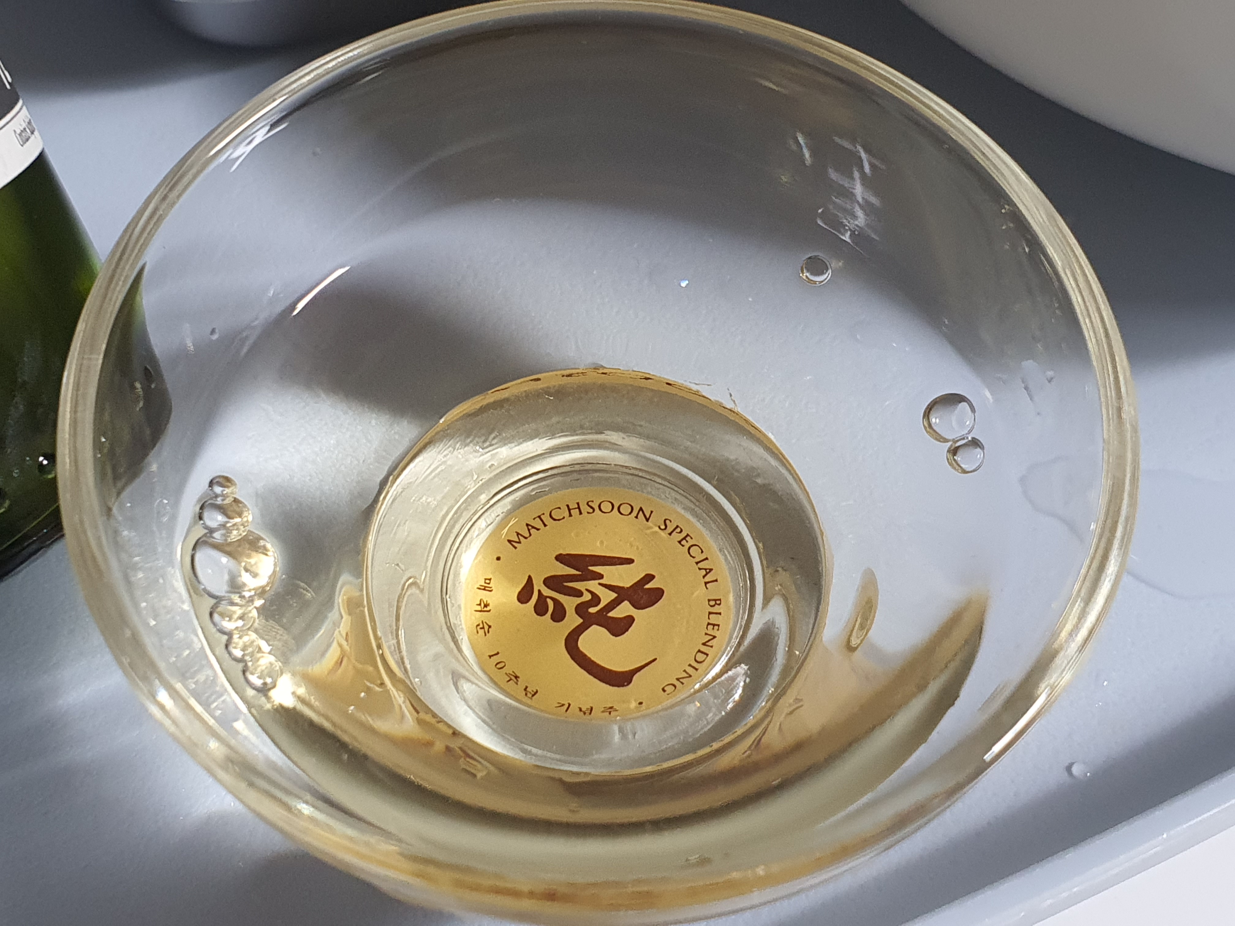 집에 와인잔이 없어서, 청주잔에 마셨어요.