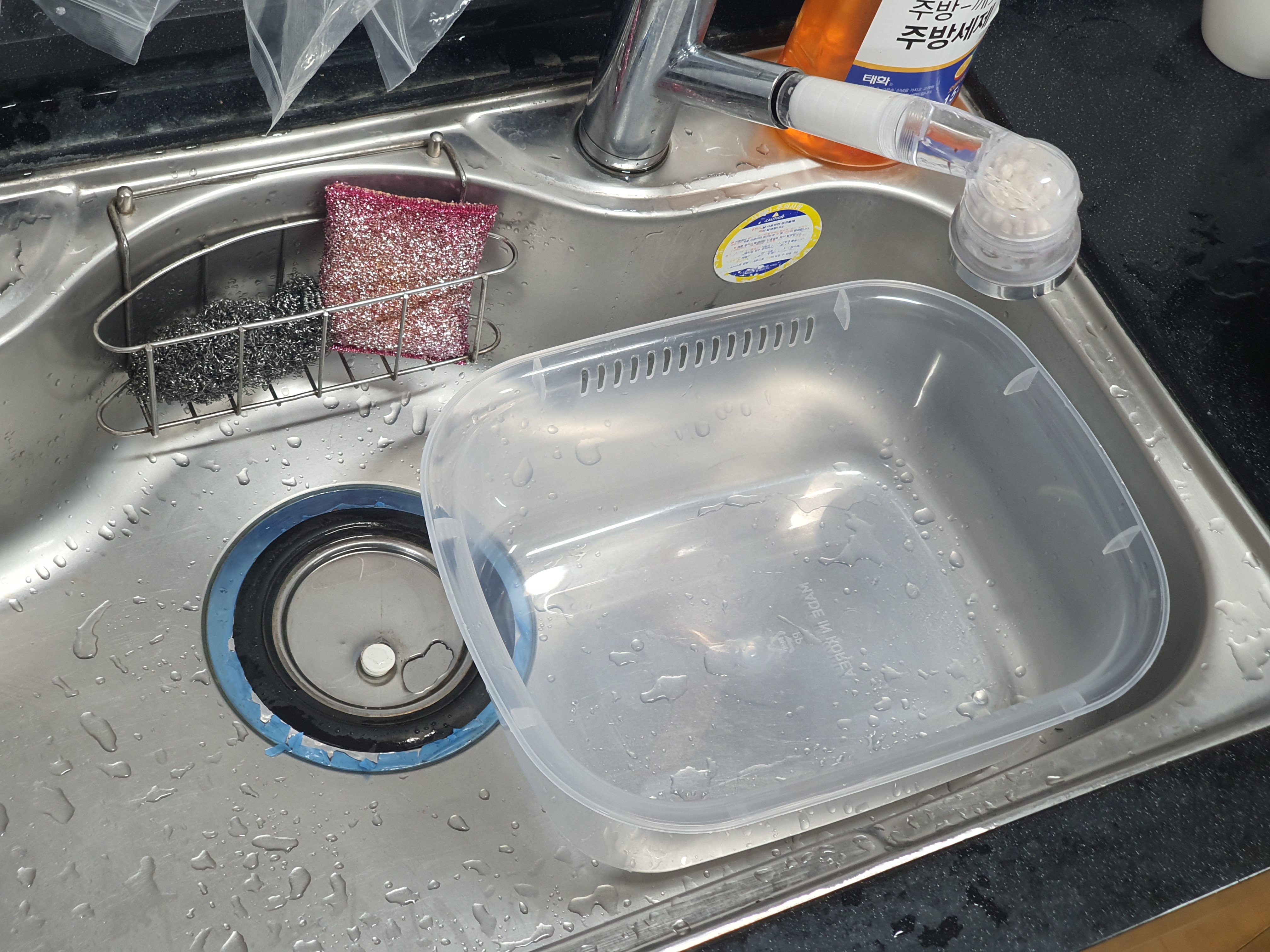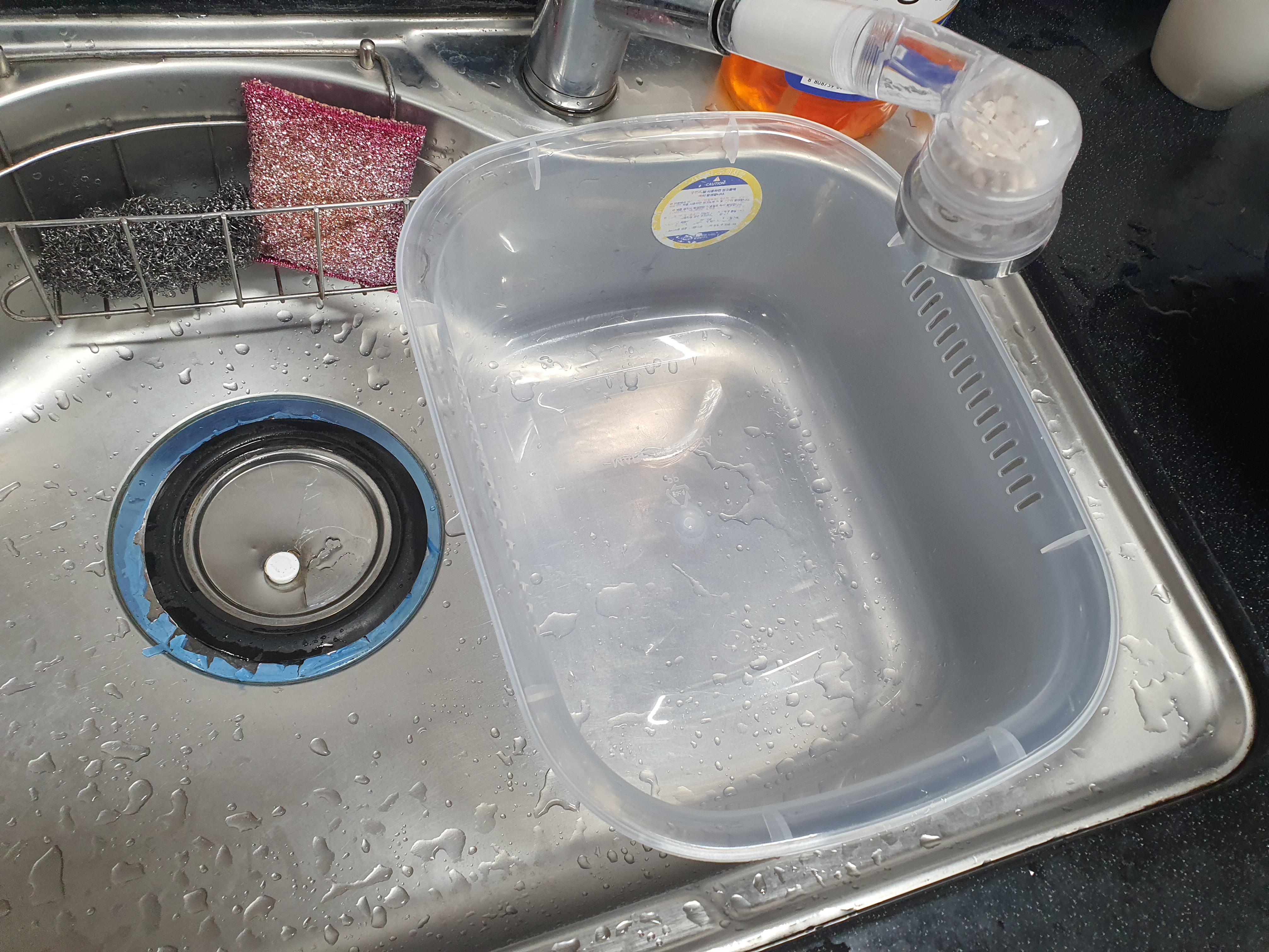 그래서 플라스틱 싱크대야를 구매했어요.