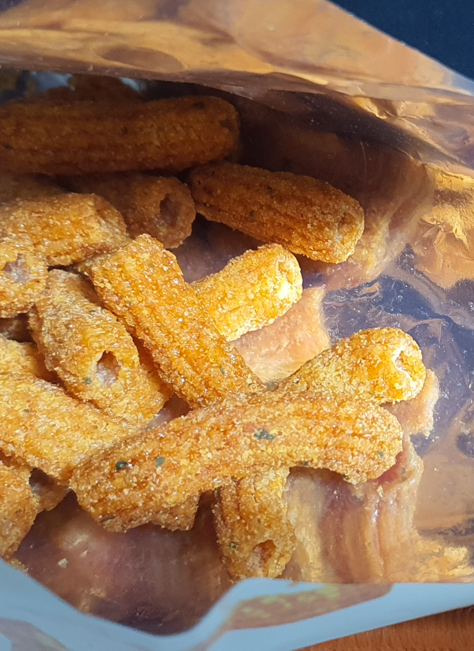 마카로니 모양의 과자의 식감이 너무 좋아요.