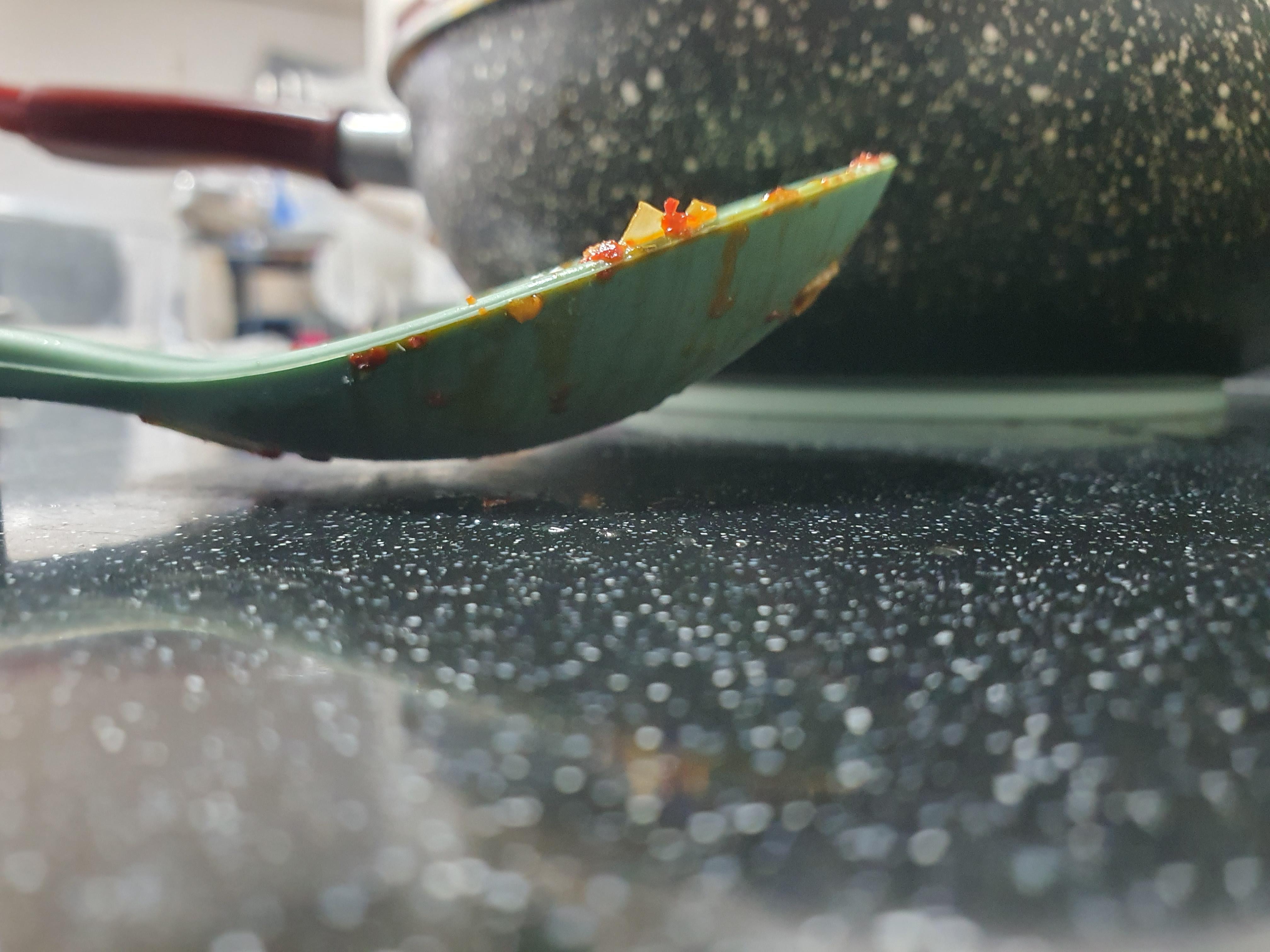 하지만 스푼에 묻은 '국물, 기름, 식재료'가 바닥에 닿는 경우가 잦은 거 같아요.