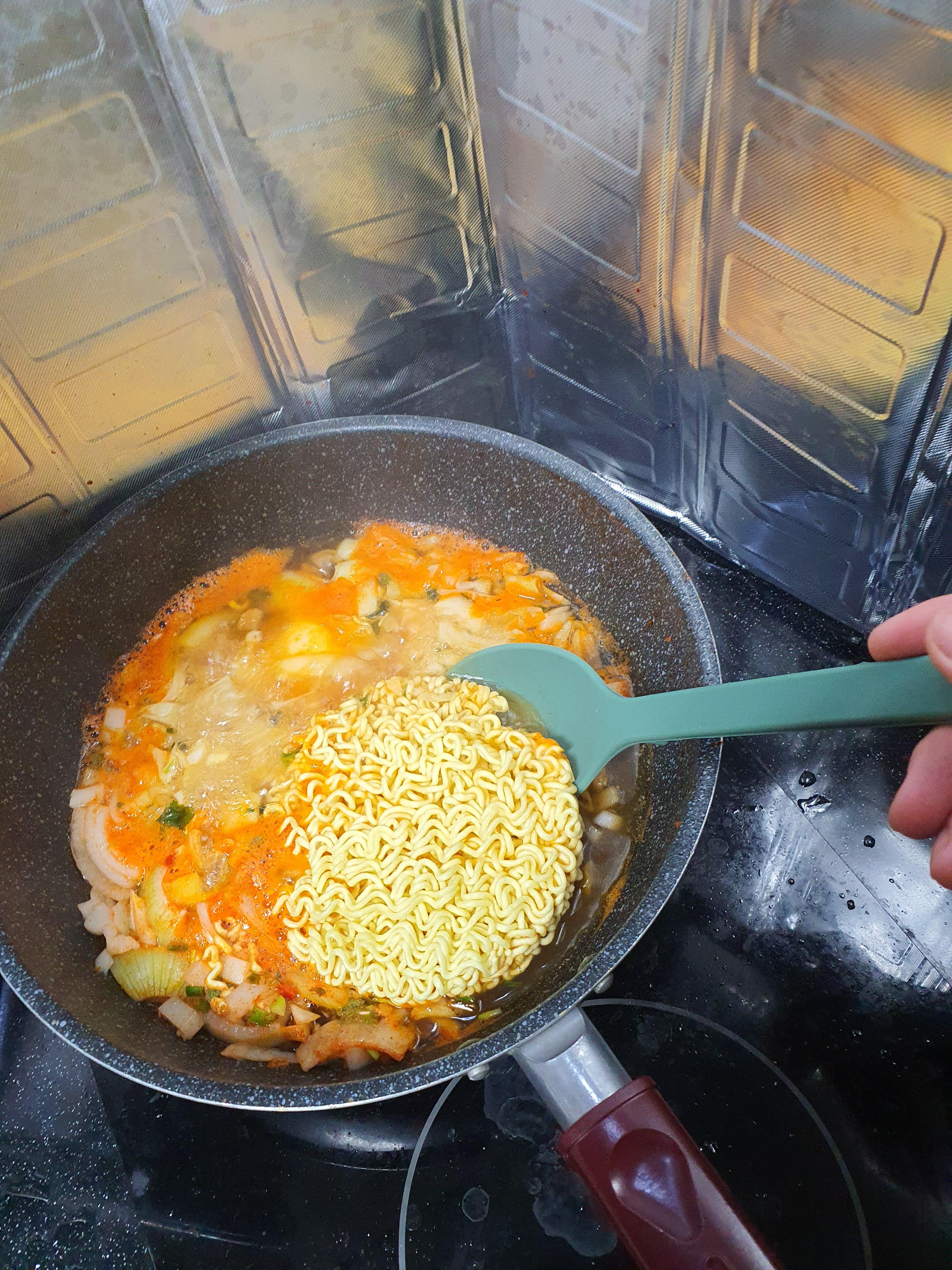 실리콘 요리스푼, 라면의 면을 익힐 때 면발을 뒤집을 때도 사용합니다.