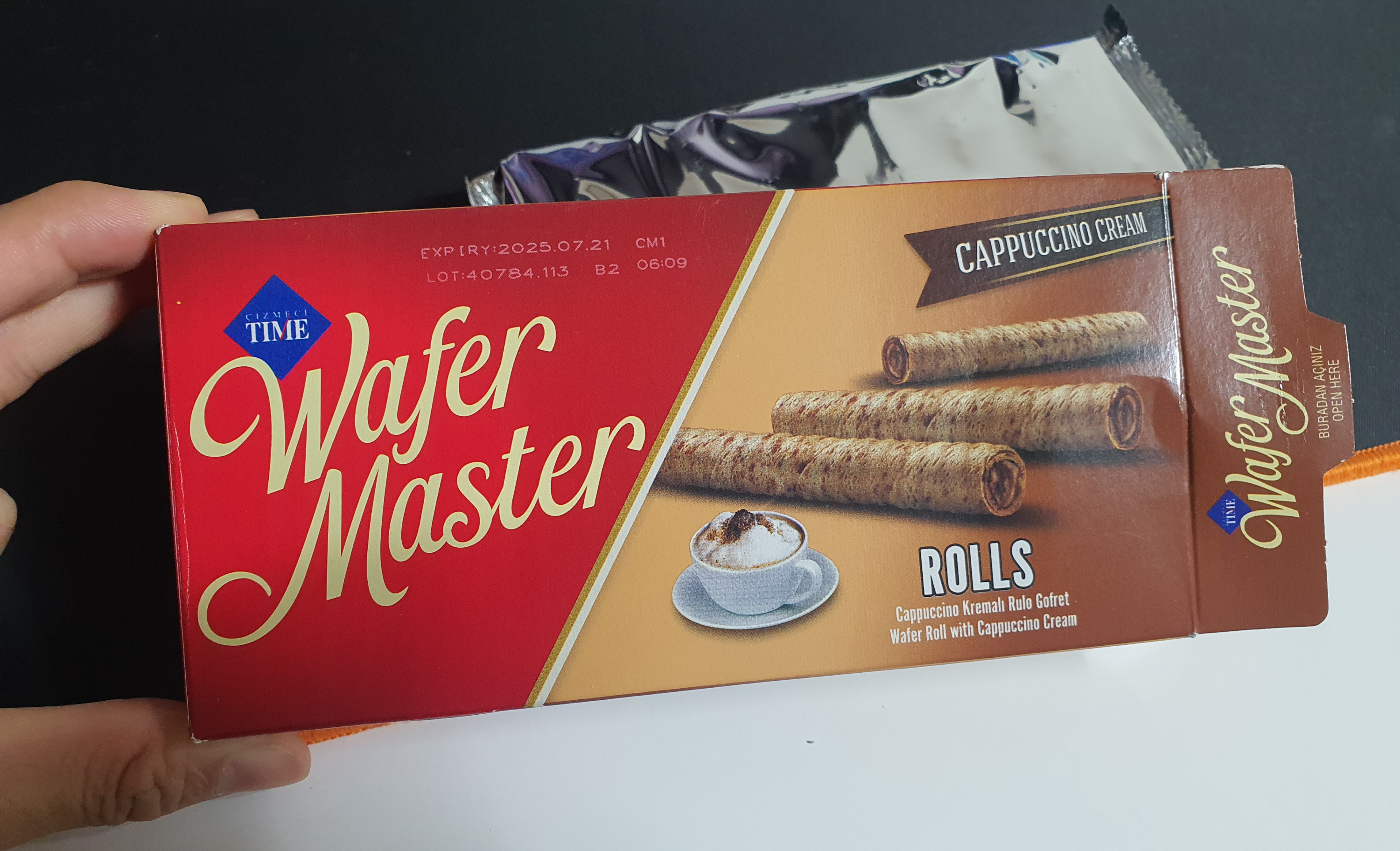 웨이퍼 마스터 롤 카푸치노크림, 가격 1000원.