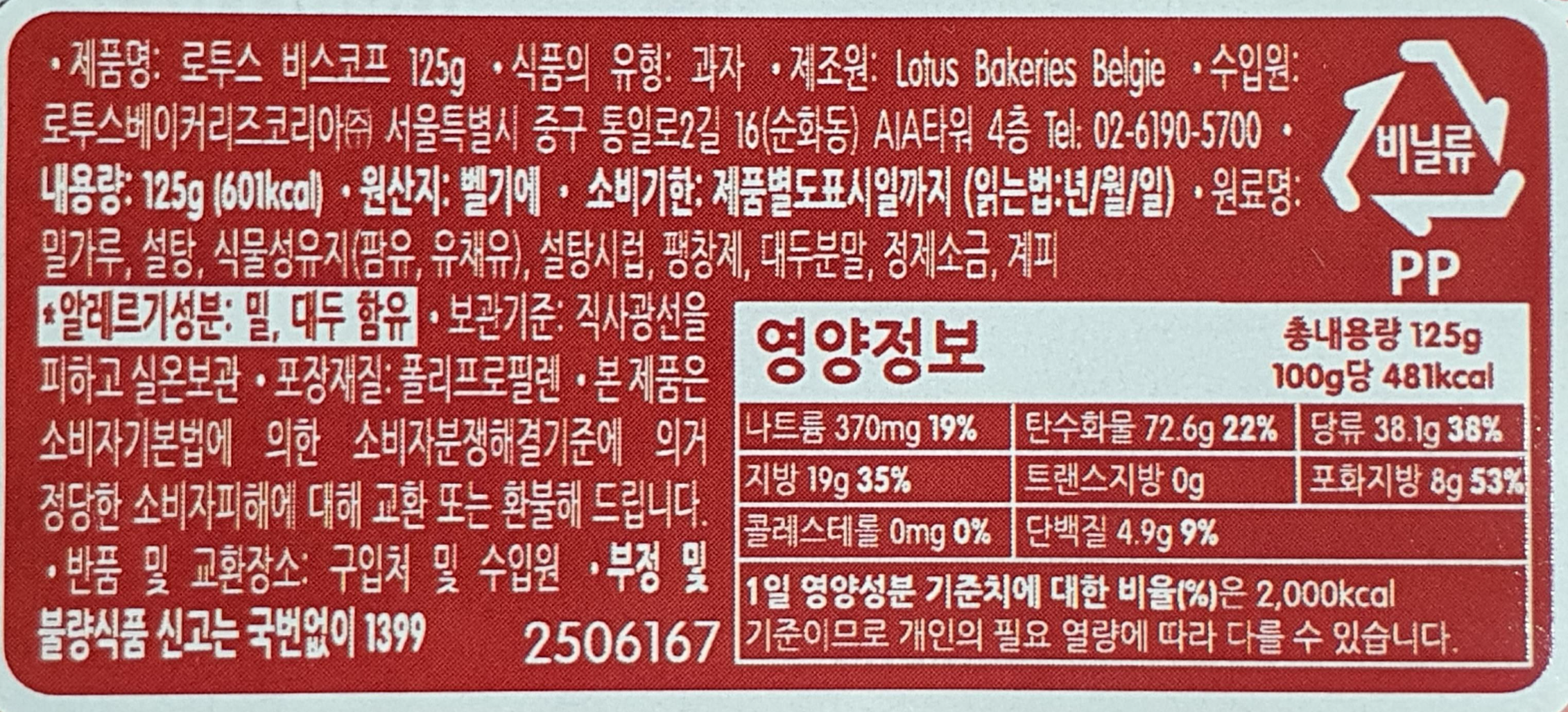 제조원: Lotus Bakeries Belgie