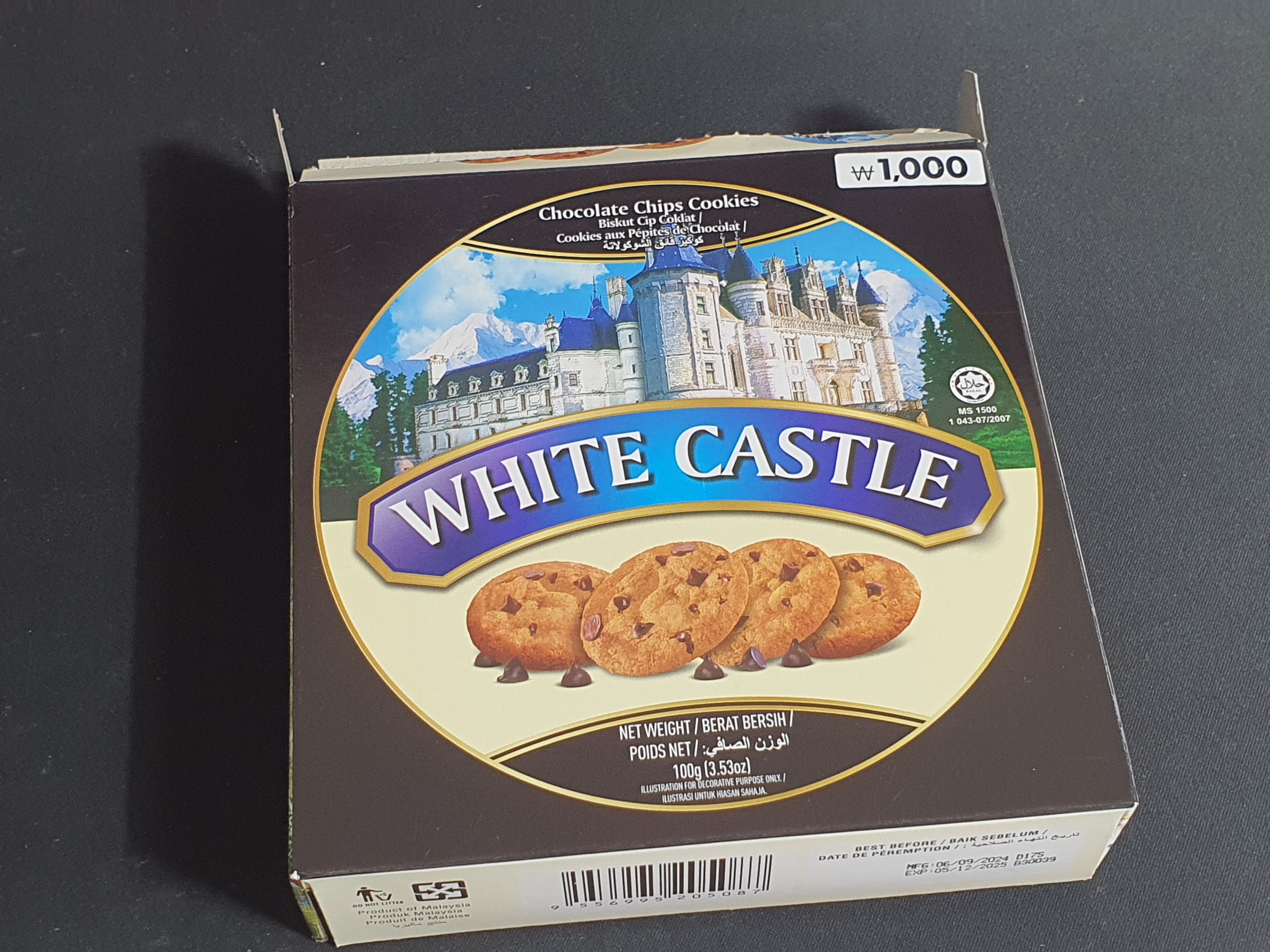 다이소 해외과자, 화이트캐슬 초콜릿칩 쿠키, 가격 1000원.