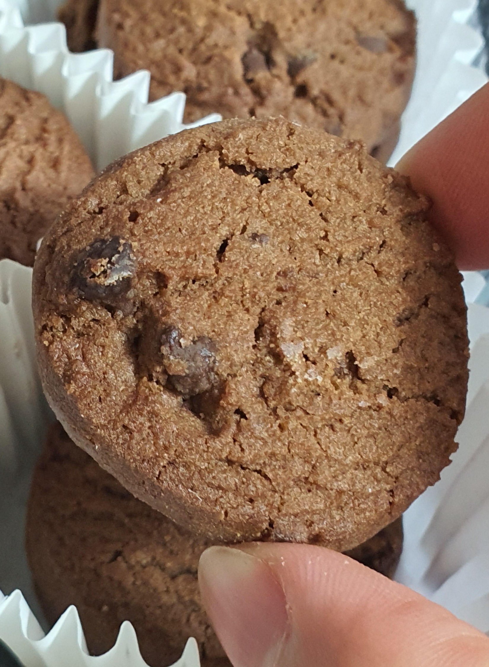 바삭한 쪽에 가까운, 메마른 초코 쿠키 입니다.